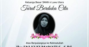 Ibu Eni Kusumawati S., S.Pd. meninggal pukul 02.00 dini hari Jumat, 23 September 2022 di RS Pelamonia Makassar. Jenazah dalam perjalanan menuju rumah duka di dekat lapangan Sidobinangun sejak pukul 05.00 hari ini. Informasi sementara, pemakaman insya Allah diadakan sore ini. Dihimbau kepada seluruh siswa dan alumni SMAN 4 Luwu Utara (Ex. SMAN 4 Luwu Utara) agar dapat menghadiri pemakaman …